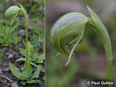 Greenhoods are orchids which grow, mainly, in sandy soils. The hood is the flower and it is made up of petals and sepals that fold over each other to enclose the pollen and style.