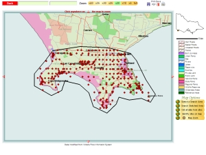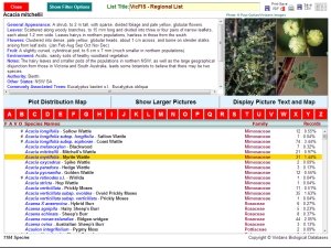 Find all Species in the Area Another mouse click will summarise all the data from the search and present them in an interactive table. From this you may display photographs, descriptions and full distribution maps of any species in the list. |